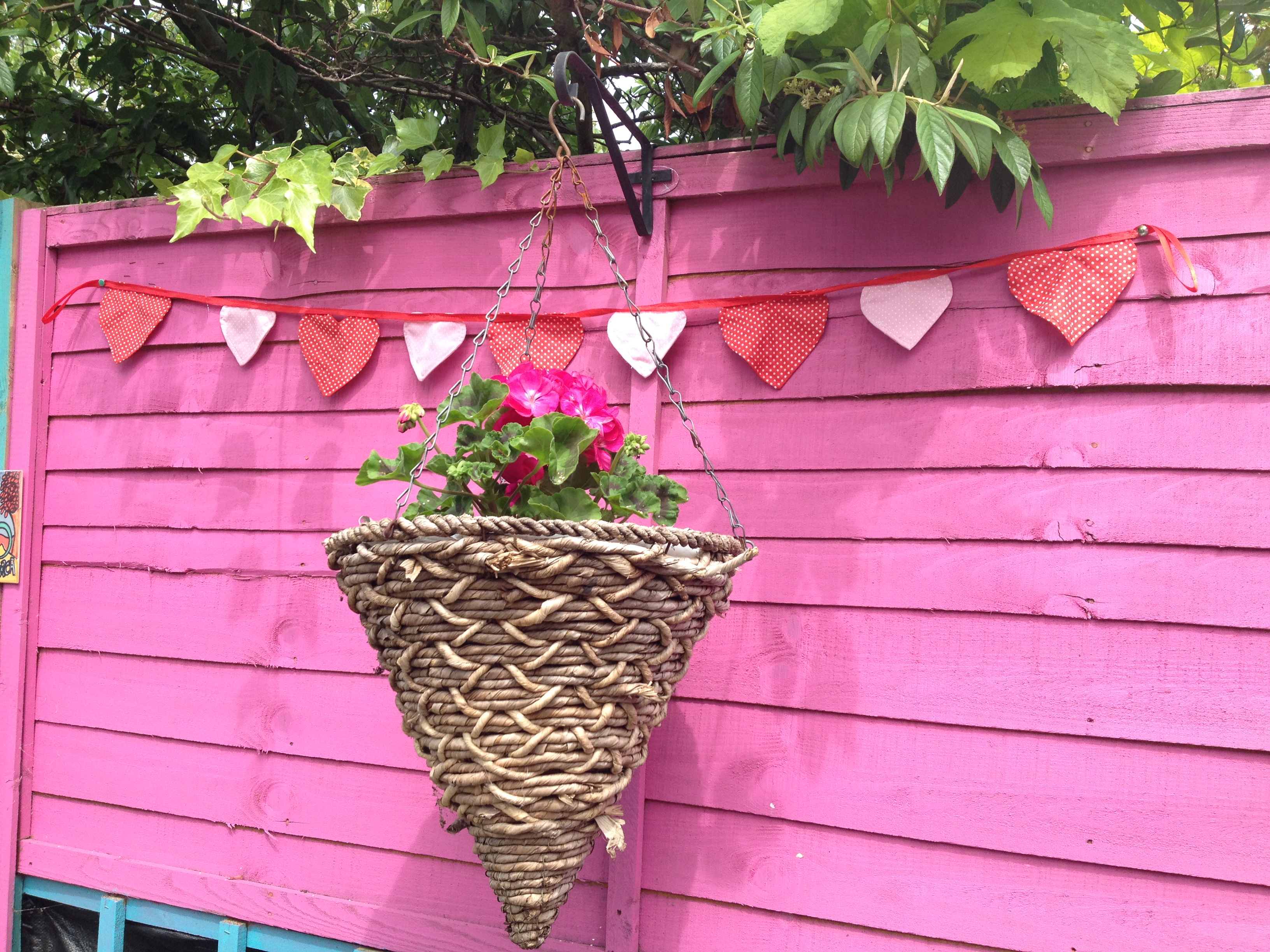 I love my pink fence! It took me hours to paint when my son first started school. It was my project! After seeing the colourful gardens in Moseley in Bloom, I decided to add some decoration myself.