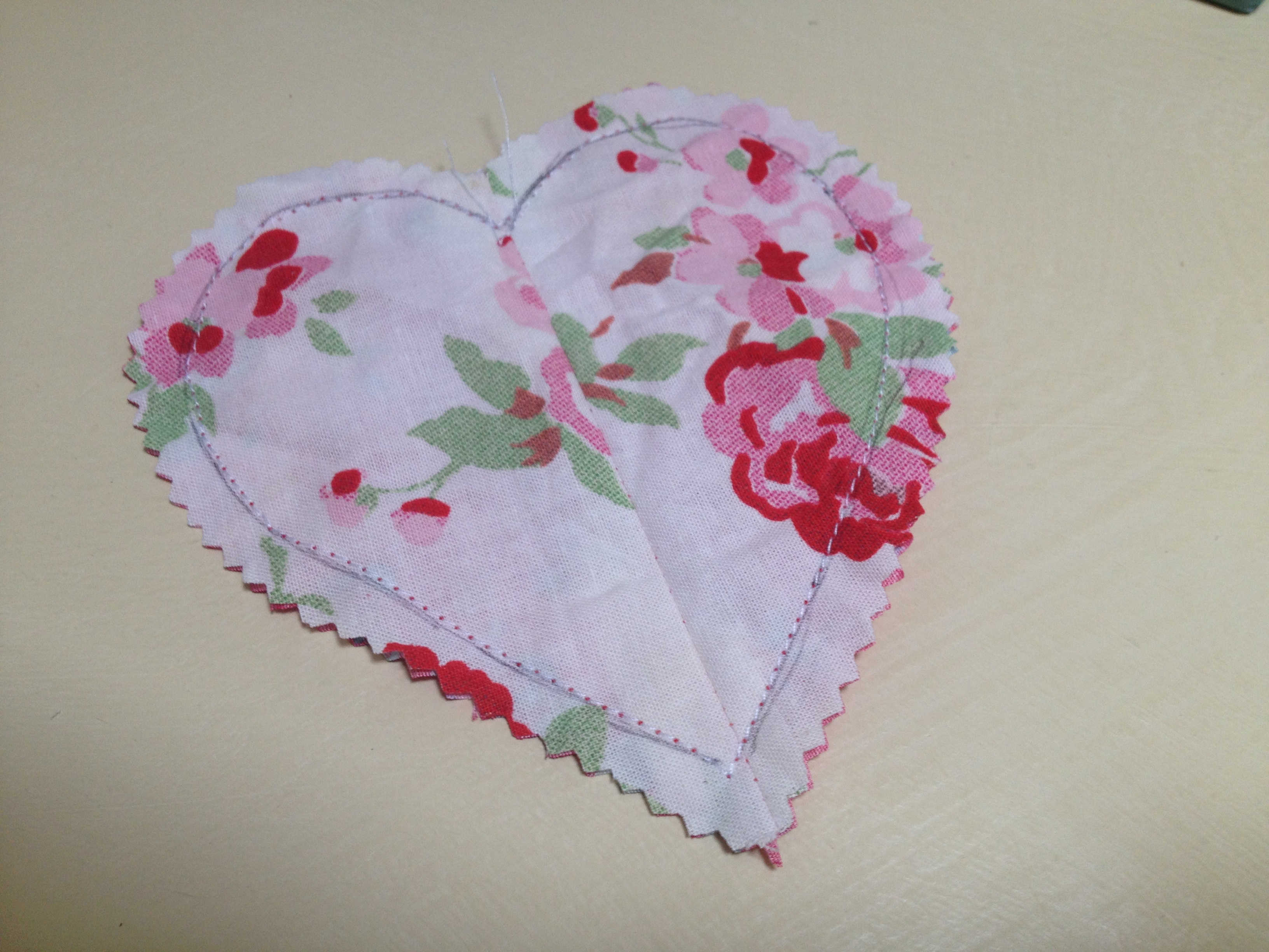 Once finished, use pinking shears and cut round the heart with about a 1cm gap all around.