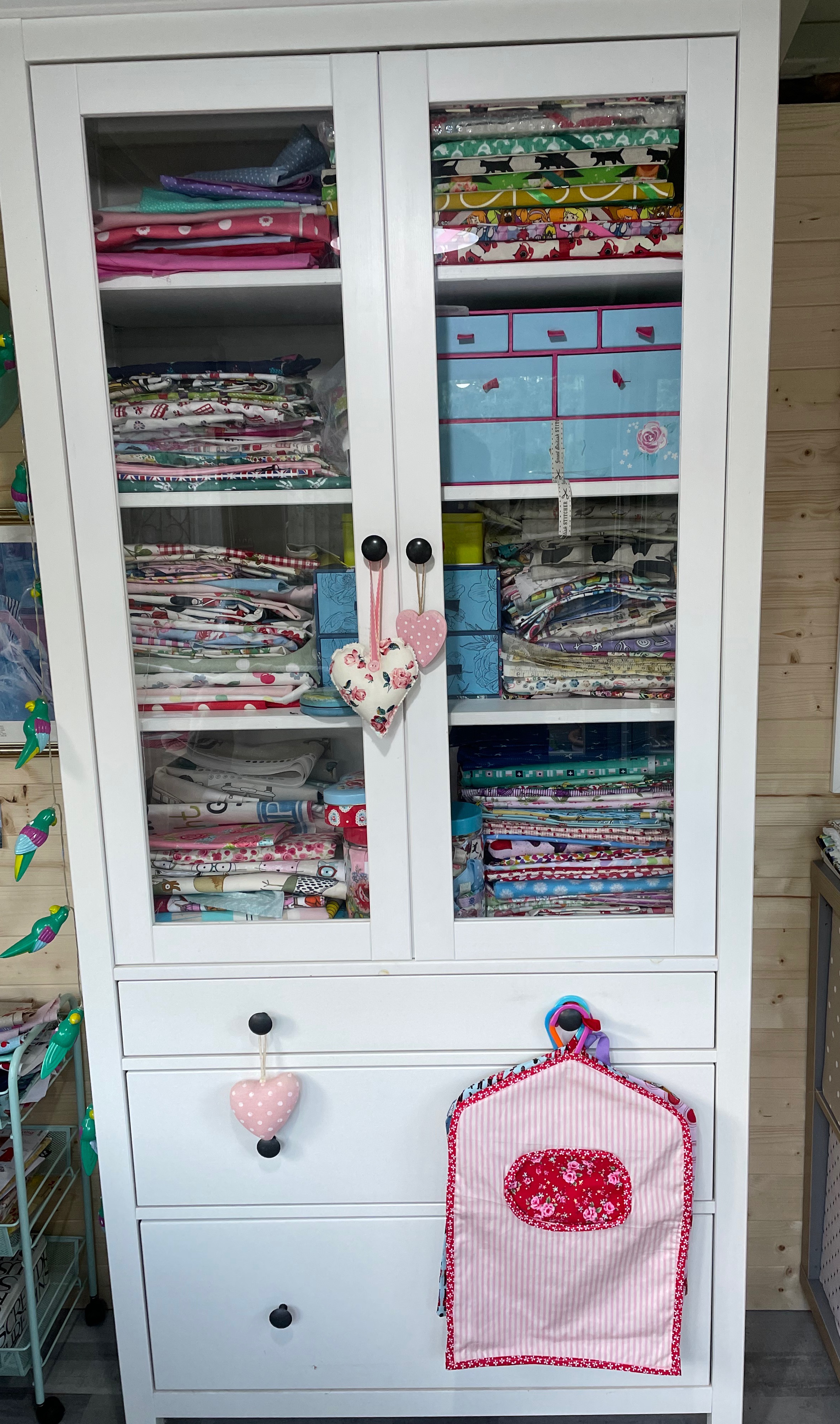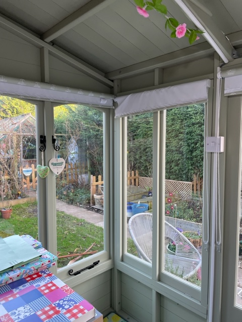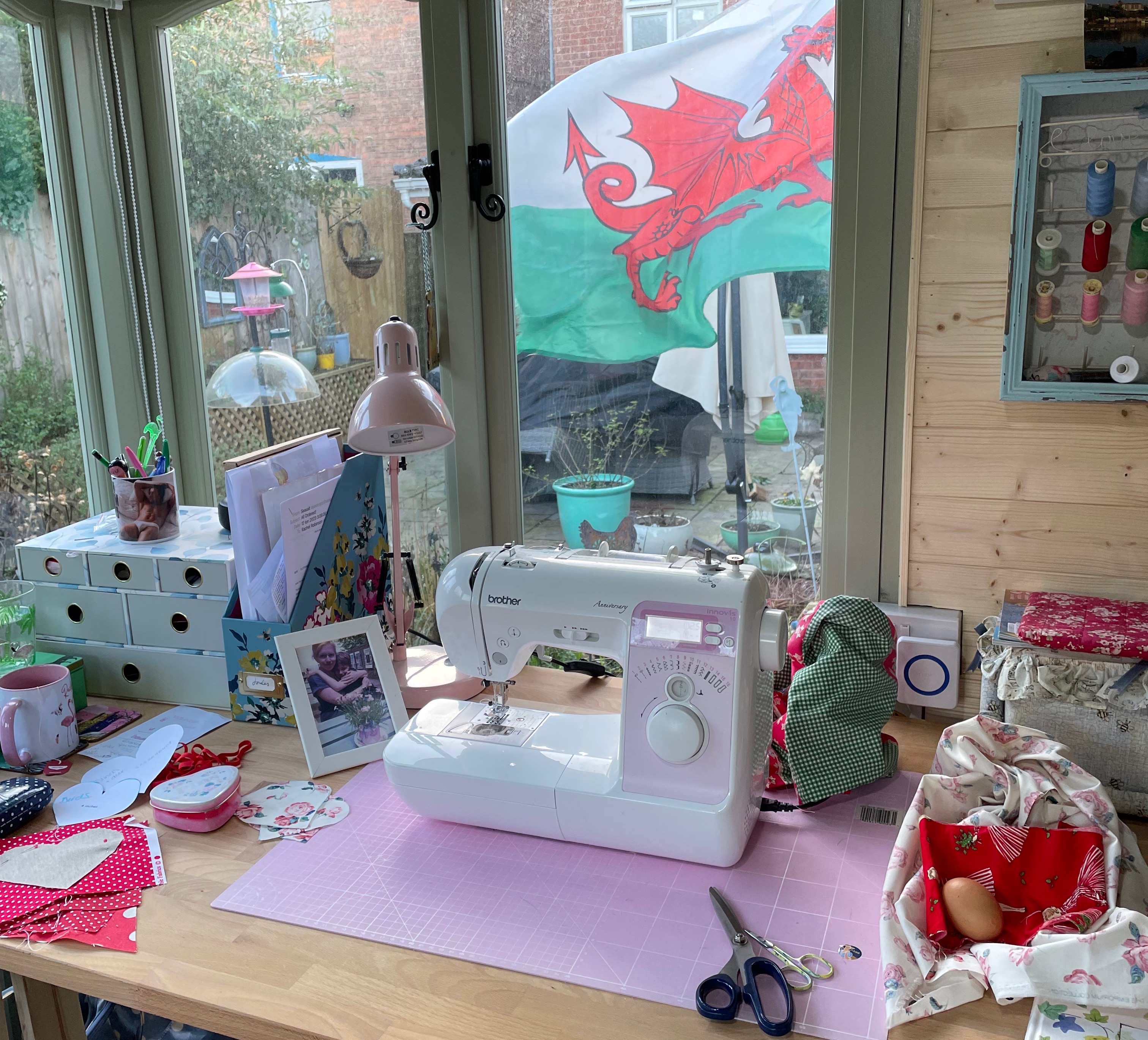 My Christmas present to myself was a long awaited garden office. I actually ordered it in September, so it was an early Christmas present really! It didn’t arrive until November and it has taken ages to sort things out. The office had to be insulated as it was too cold to work, despite a heater. I mean, it’s basically a big shed in the garden, isn’t it? My friend came and worked on it for me and showed endless patience when I kept moving things about and adding pictures to the wall, then changing my mind! Anyway now it’s finally finished and I couldn’t be happier. It’s my little oasis of sewing in the garden, Plus I can look out the window and look at my rescue chickens too! Obviously it’s great now, but will be lovely in Spring and Summer, when I can open the door and embrace the birdsong and sounds of the garden.
