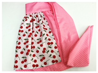 Other favourites include the fabulous home economics fabric by Michael Miller, featuring various retro kitchen appliances, in red! I also have a cake apron featuring purple and blue layered cakes. Great for those cake and sweet stuff lovers out there. Lastly one of my favourite fabrics is the blue chef design with pale blue and white spots.
