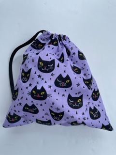 I make lots of sewing gifts from cat fabric, including bags, bunting and wallets. However I have never made anything specifically for Halloween. So a few weeks ago when I spotted this wonderful fabric I simply just couldn’t resist! The fabric features lots of mischevious black cat faces in various poses. I love the background colour too, which is a pale lilac.