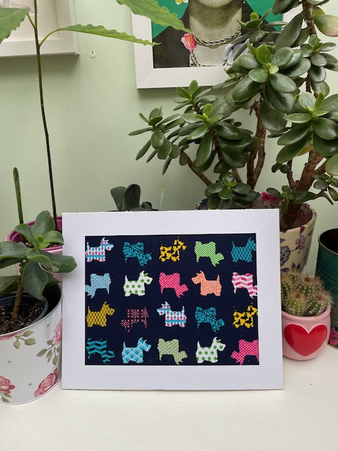 Next up is a delightful picture for all those dog lovers out there. This features a quirky scottie dog print. Indeed lots of multi coloured scottie dogs on a navy background. I love this fabric and the card holder I make this fabric from keeps proving popular.