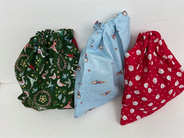 I have also enjoyed making these Christmas santa sacks. They come in festive fabrics, including a Peter Rabbit print for the little ones. All made to order with different sizes available. They are great for holding small presents and can be used time and time again. Much better than throwing away giftwrap!