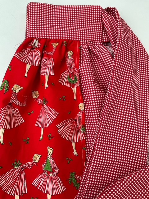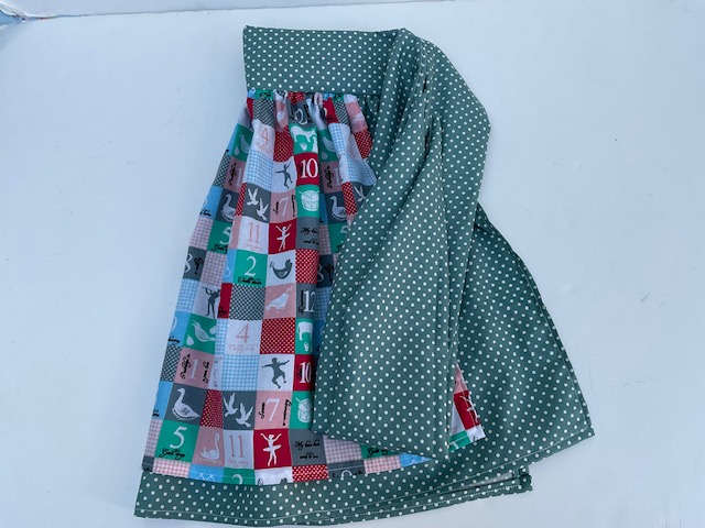 I love making aprons and have made 2 Christmas aprons to order. The first is the cover apron on this post featuring a 1950’s print. The second apron has a slightly more traditional theme based on the famous 12 days of Christmas song, with fabric featuring the days and the festive picture that goes with it.