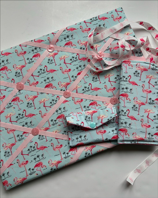 With the dark mornings and evenings, it is nice to look ahead to Spring and Summer. This cheery flamingo fabric came in as an order for a memoboard just after Christmas. I loved making it so much, I thought it would be nice to have some summer accessories, so I made a sunglasses holder and a credit card holder too. I am looking forward to hopefully seeing some flamingos this year!